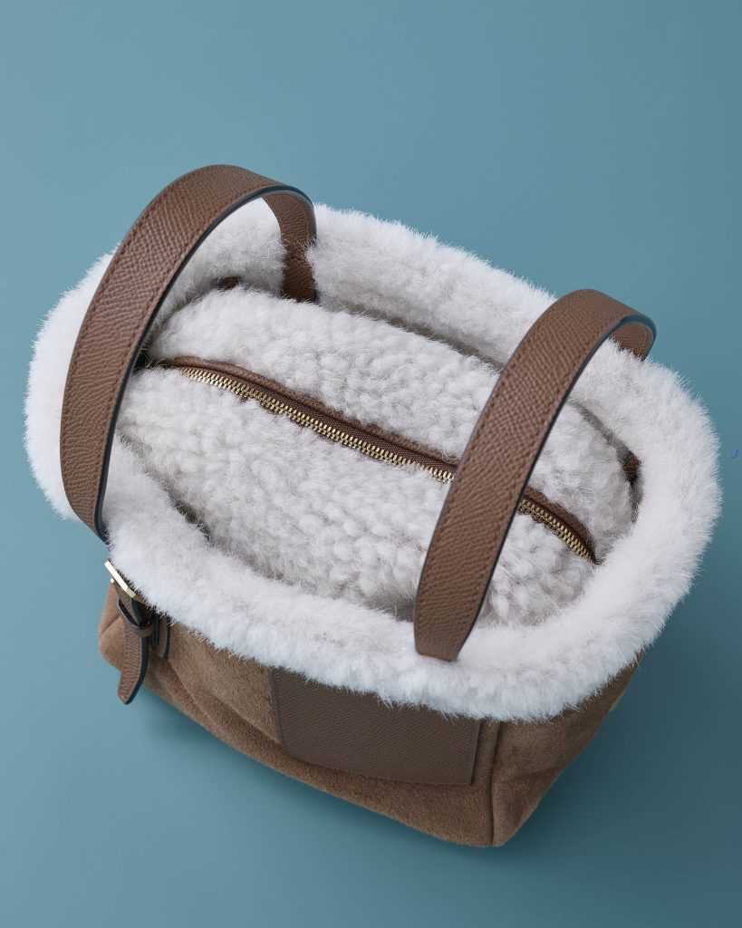 手にした瞬間に、気持ちが上がる素材感! “ヴァレクストラ”から登場した最新コレクションのバッグは、上質なシアリング(毛が刈り込まれた羊革)があしらわれた、ふんわりとした風合いが魅力です。