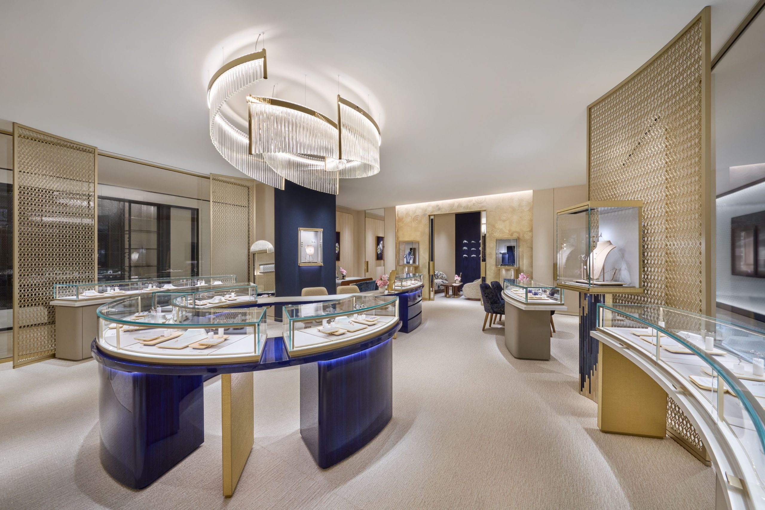 245年にわたる歴史を誇り、ナポレオン1世やジョゼフィーヌ皇后に愛されたパリのハイジュエラー。新しくなったブティックは、「サファイアブルー」が象徴的な、開放感あふれる空間です。