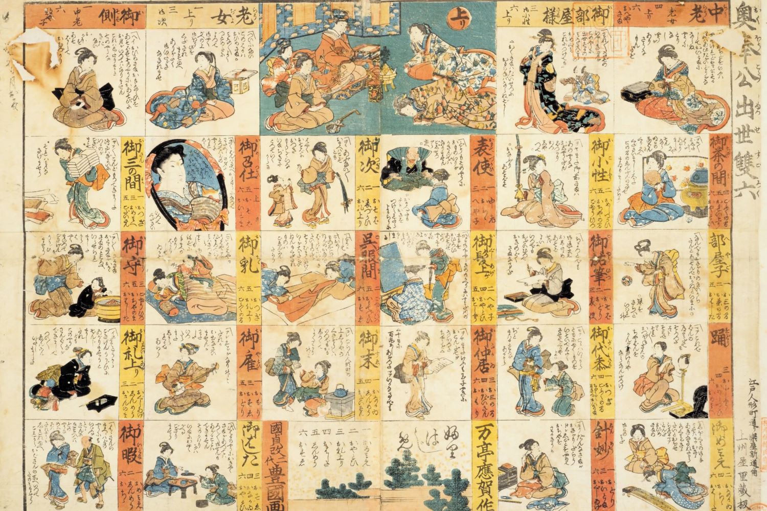 大奥女中の出世コースを双六に見立てた『奥奉公出世双六』によると、ゴールは大奥の指揮監督者である御年寄(おとしより)か、将軍の子どもを産んだ側室か。
