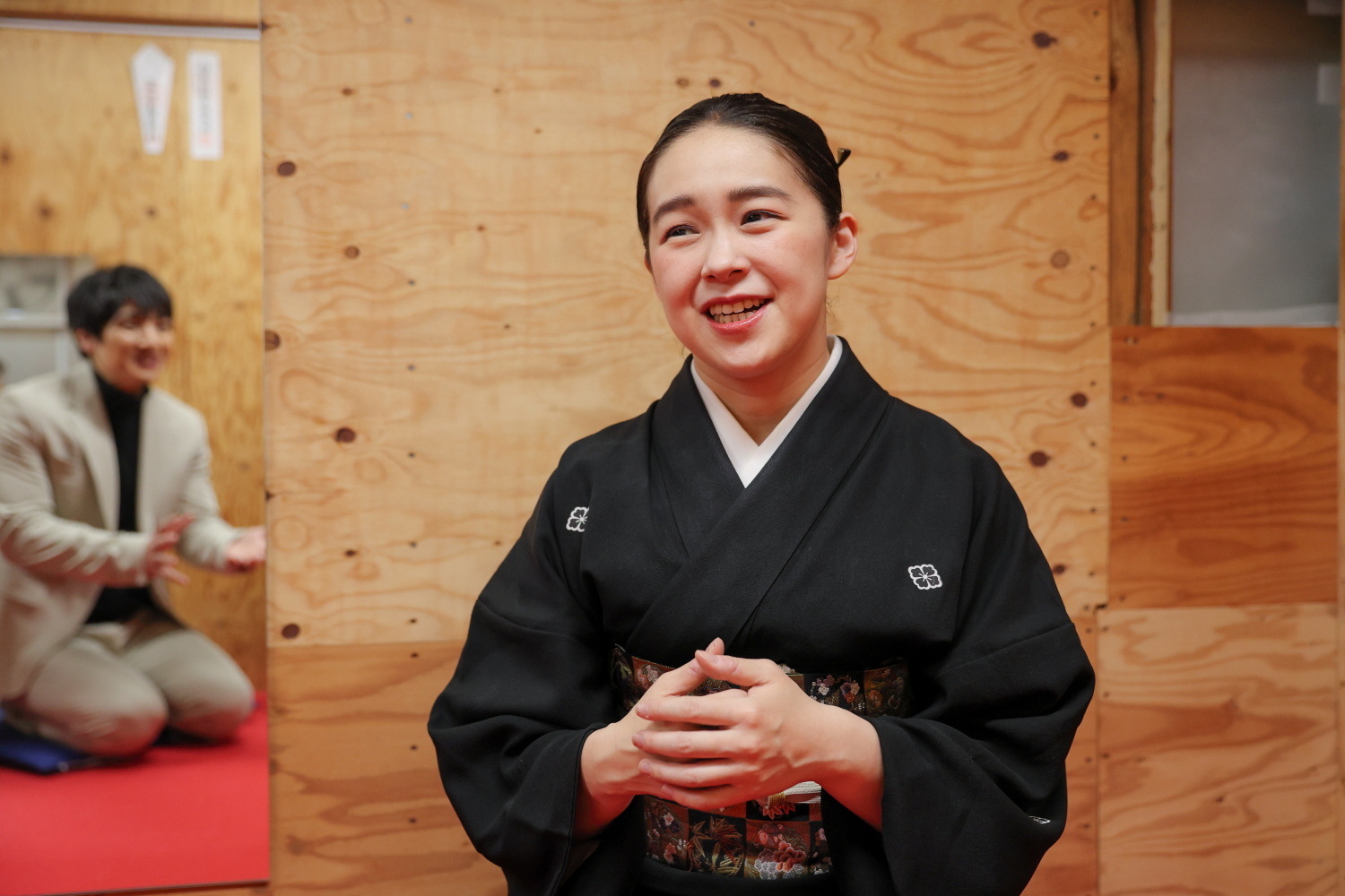 大須演芸場で行われた『令和六年春 抜擢昇進 真打昇進披露興行』で、寄席を初体験した本田さん。林家つる子師匠と三遊亭わん丈師匠の落語の他、林家正蔵師匠や林家三平師匠、三遊亭天どん師匠の落語や色物など、豪華な披露興行を楽しみました。なかでも世代が近いつる子師匠と、一回り年上のわん丈師匠の話芸には、大いに刺激を受けたようです。そんな二人へ、本田さんに直撃インタビューしていただきました。