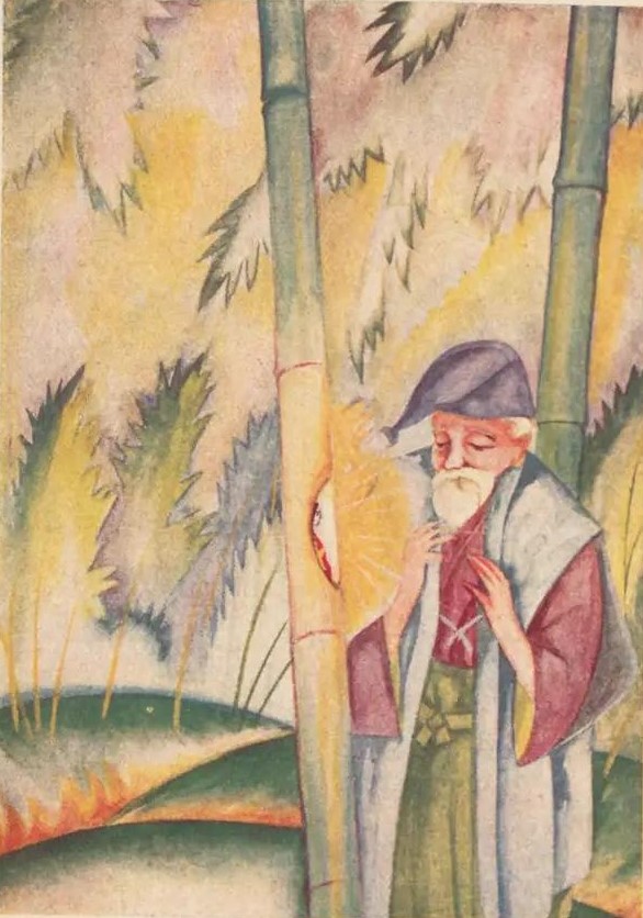竹のなかからは可愛い女の子が出てきました。女の子は、みるみるうちに背が伸びてランパほどになりました。やがて二人は愛しあい、一家三人で楽しく暮らしました。