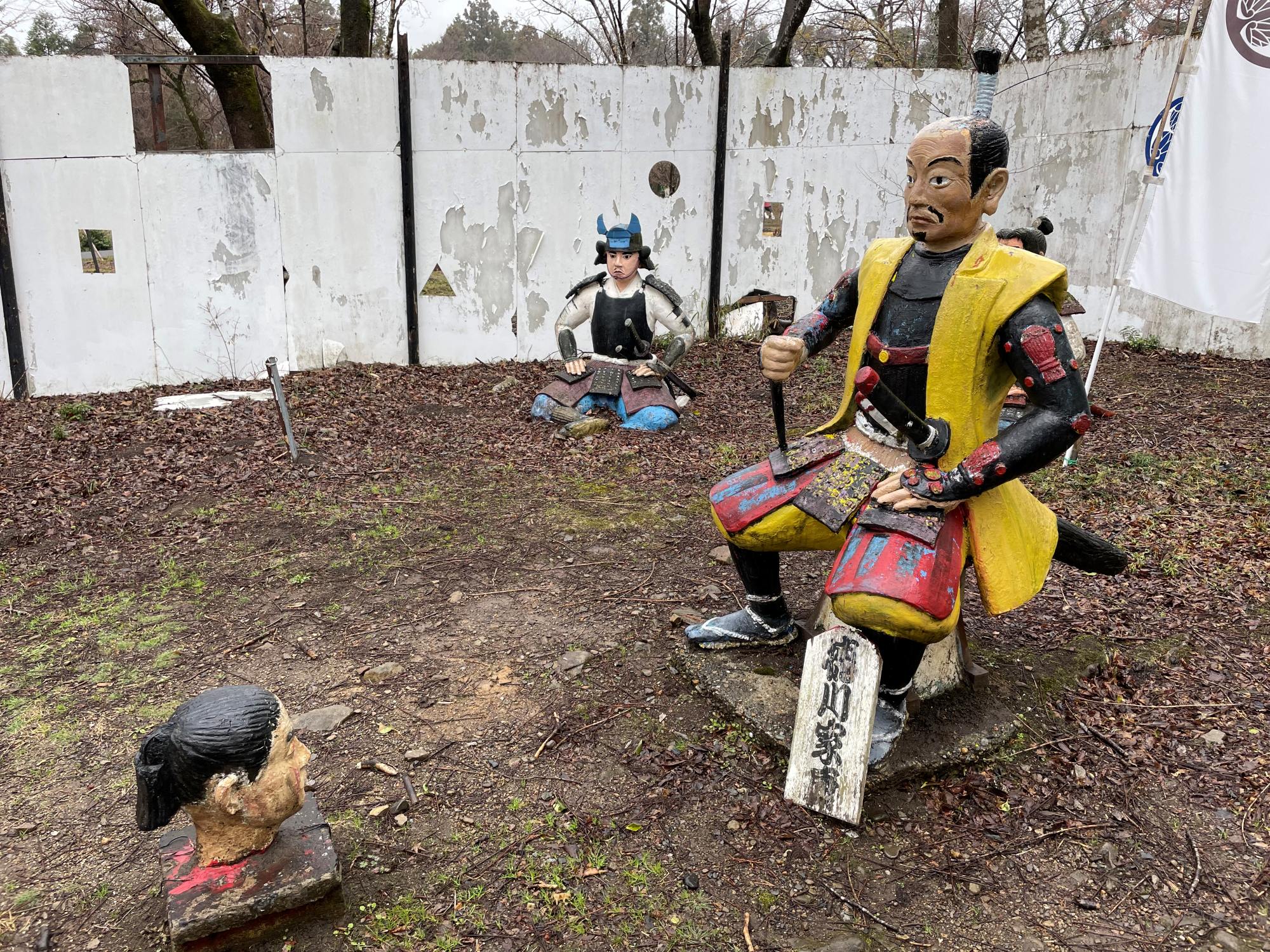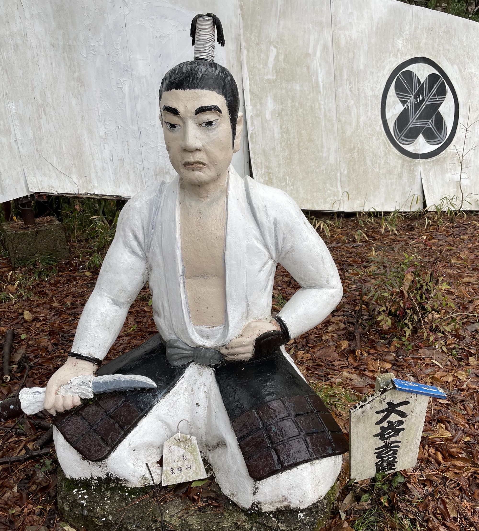 関ヶ原ウォーランドには、裏切った小早川に攻め込まれ、切腹に追いやられる大谷吉継(おおたによしつぐ)のコンクリート人形もある。
