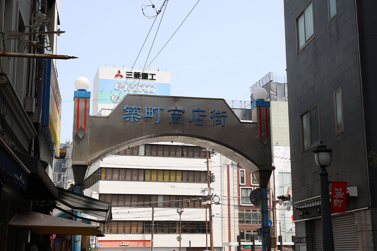 JR長崎駅からだと市電の「浜町アーケード駅」で降りて、横断歩道を渡ればすぐの場所。活気ある「築町商店街」の入口付近だ。