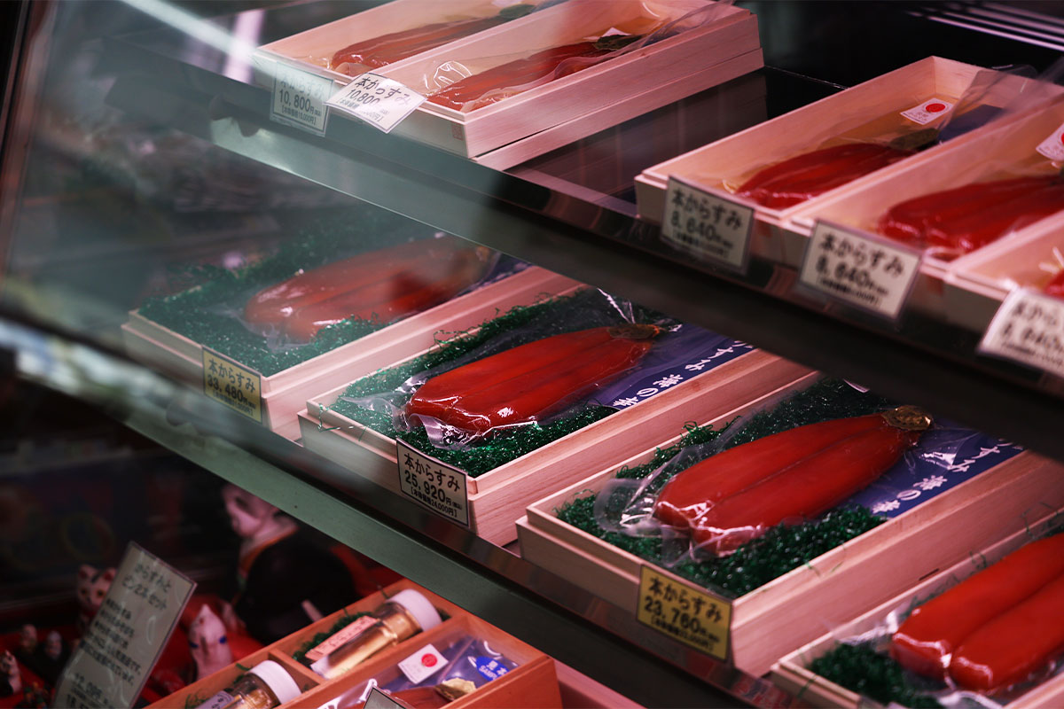 確かに、店内には様々な形式の「からすみ」が販売されている。