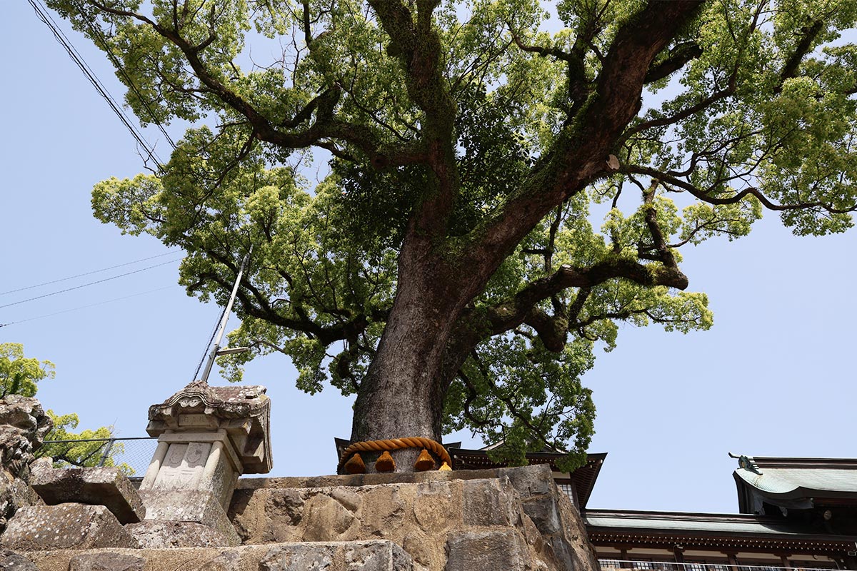 今度は、大門よりもさらに前。長坂を上らずに左手に進むと見えるのが、大きな楠(くすのき)だ。