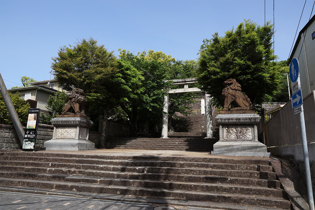 実際、諏訪神社の「五の鳥居」の前にもご立派な狛犬の姿が。