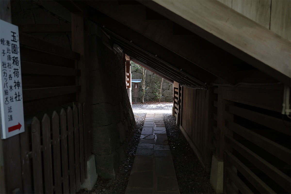 私の場合、左手から回ってきたが、じつは右手からも同じように回るコトが可能。どちらからでも拝殿の裏側を通れる構造となっている。