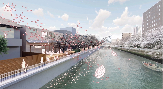 深川地区に川床を設置することで、京都の川床のような水辺のにぎわいや観光名所づくり、水辺に親しむ文化まで新たに創出。現在建設中の川床では、桜の木の下、唄や踊り、太鼓など深川に昔から息づいている伝統文化と芸能を披露するイベントが定期的に開催される予定です。