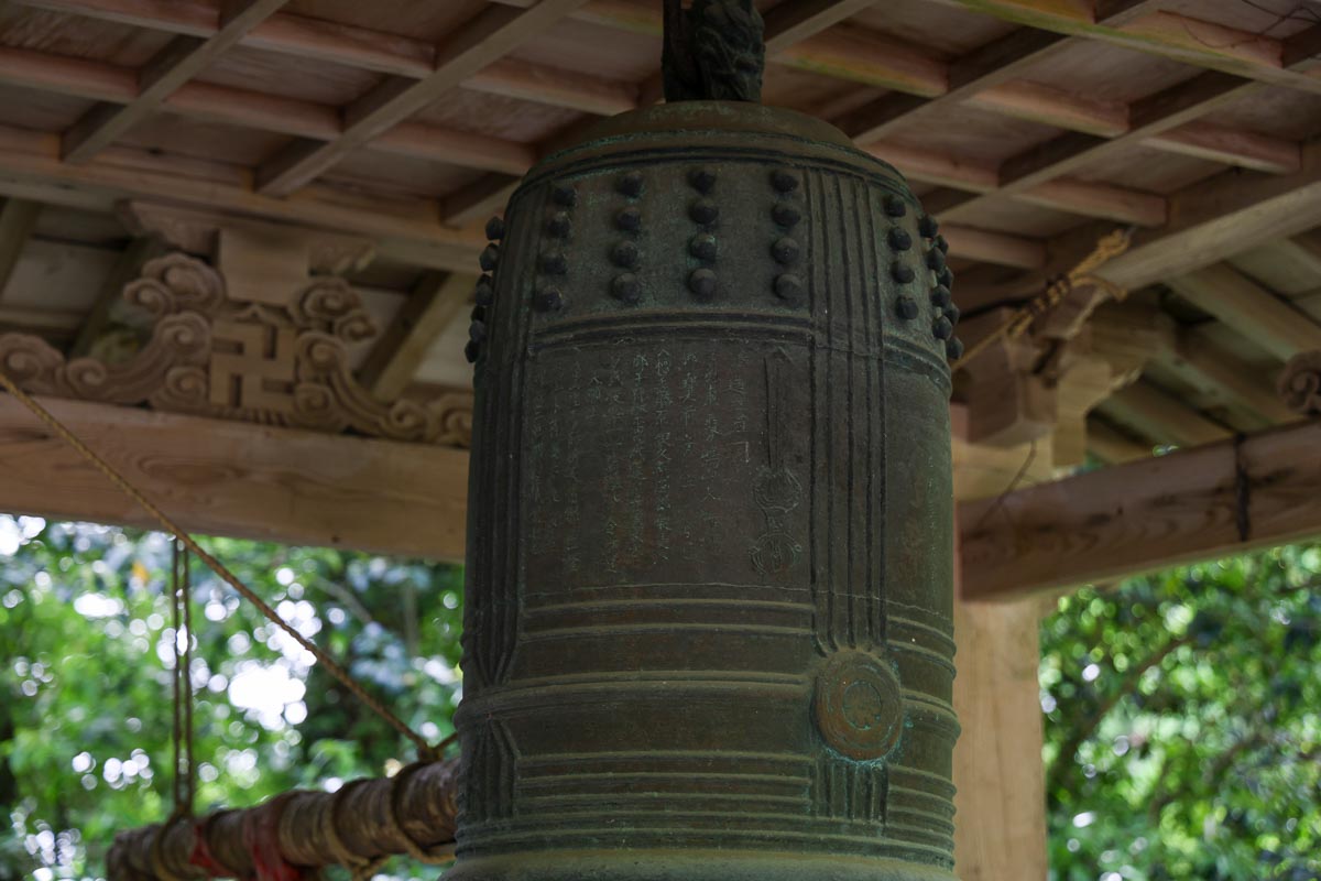 宮崎県の有形文化財に指定されているほど貴重なもので、青銅製で高さは約1m。梵鐘の表面には、幾つか銘文が刻まれている。