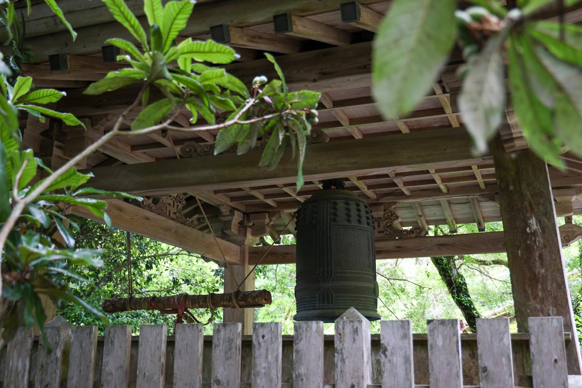 冒頭でご紹介した境内の案内図。その背後、少し高台の場所に安置されているのが、不思議な「梵鐘(ぼんしょう)」だ。