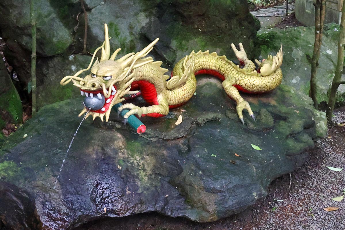 確か「鬼磐階段」の前に、金色の龍神様が……。