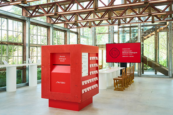 今回資生堂が催しを行う会場「Dialogue Theater – いのちのあかし –」は、奈良県と京都府の廃校の素材を再構築した、どこか懐かしさを覚える空間です。パビリオンの「いのちを守る」というテーマからは、「対話」や「多様性」の大切さも感じさせます。これは資生堂が目指す「美の力を通じて人々が幸福を実感できるサステナブルな社会」実現のために、重要な要素でもあるそうです。