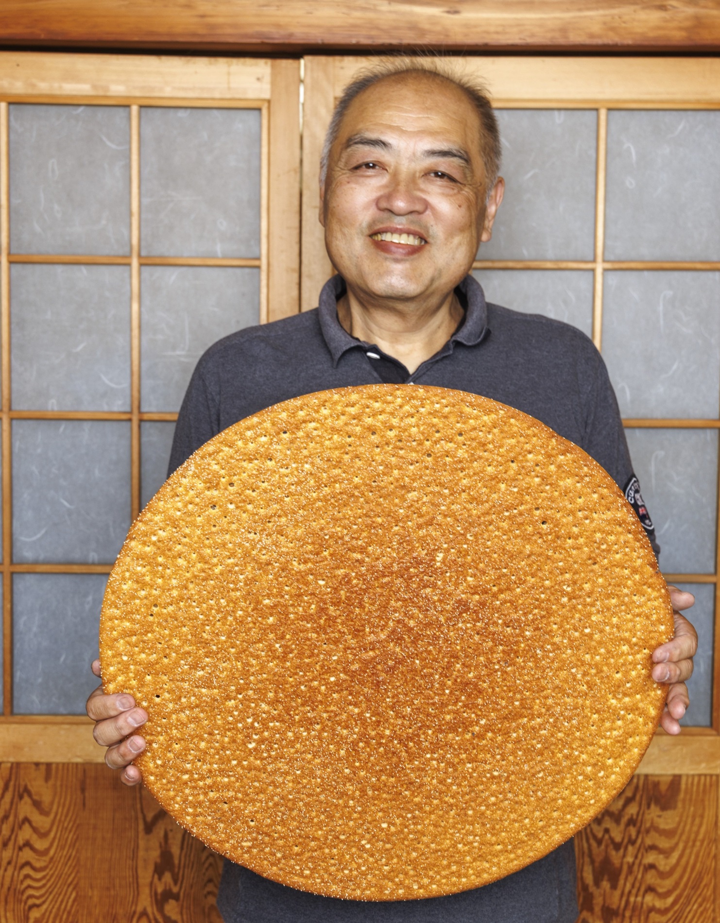 ケシの実が香る風味豊かな玉子煎餅「松風」。お好みに割ってどうぞ!