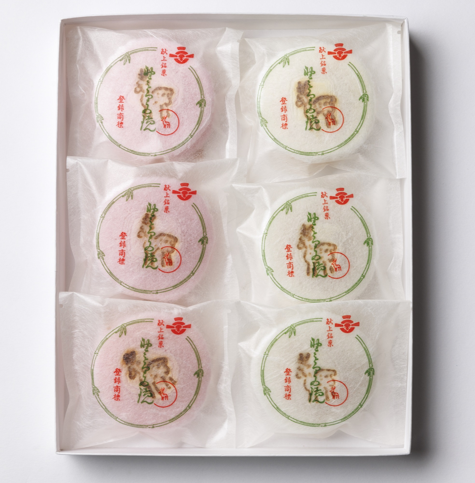 店内の茶席でまずもてなされるのが、つなぎ粉も使わず、最上のきなこを菓子に仕立てた打ち菓子。ふわっと食感を保ち、鹿を丸い姿のまま打つにも技あり。6個入518円。