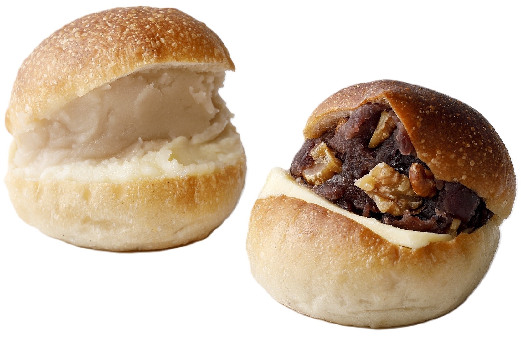 右は食パン生地+二條若狭屋のつぶ餡×無塩バター
