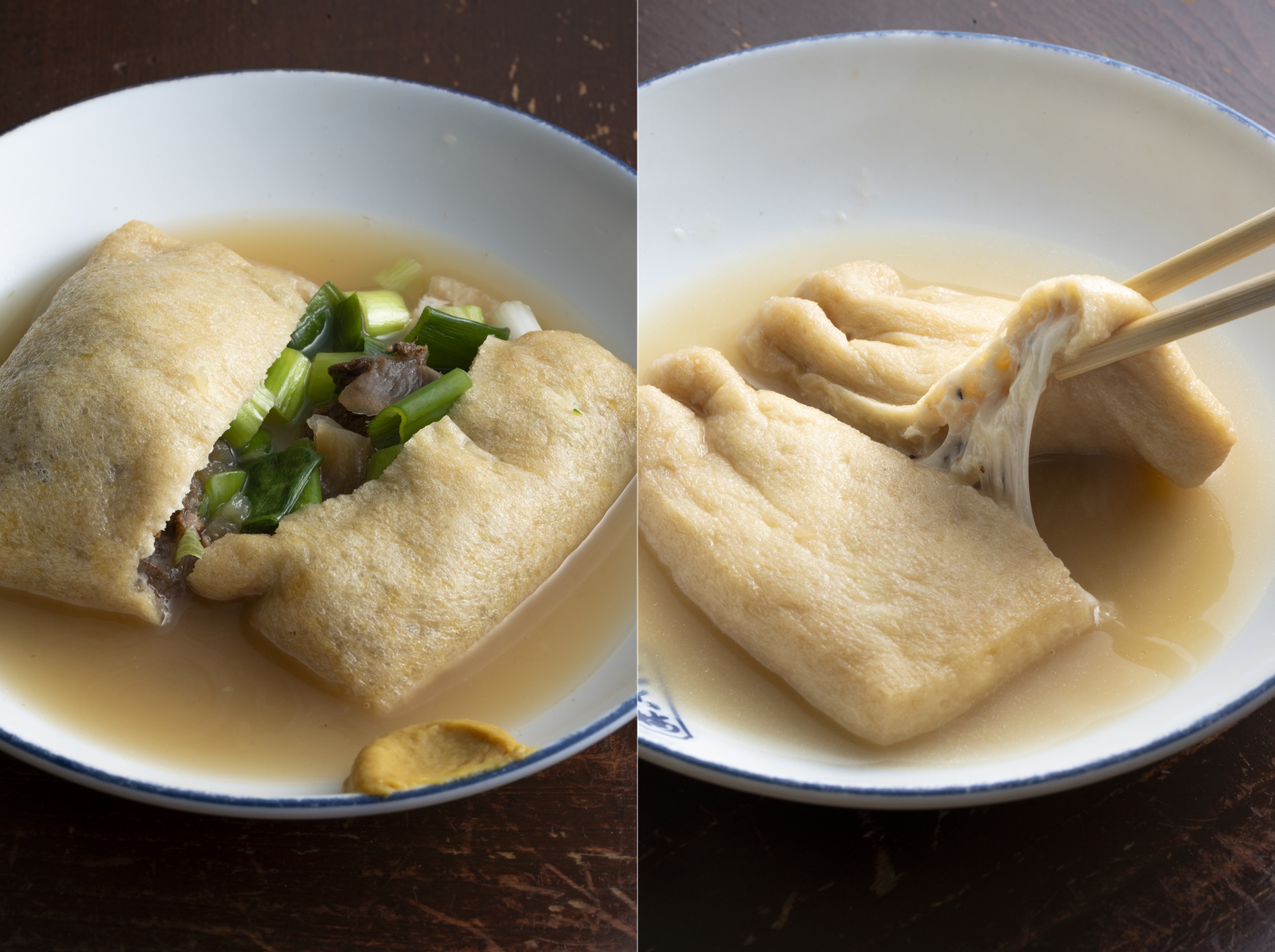 きめが細かくて出汁を吸う「寿司揚げ」を使う点も、おいしいこだわりです。
