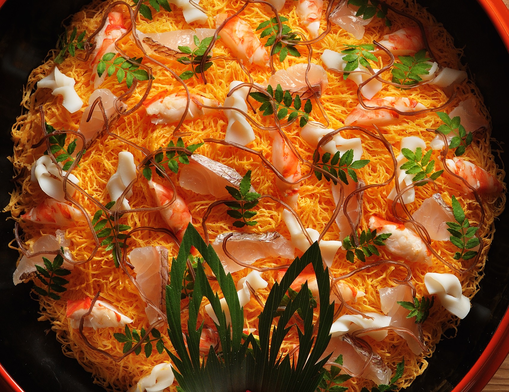 「京ちらし寿司」の見どころをひとつに絞るなら、錦糸玉子でしょう。