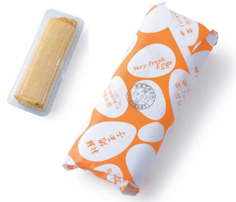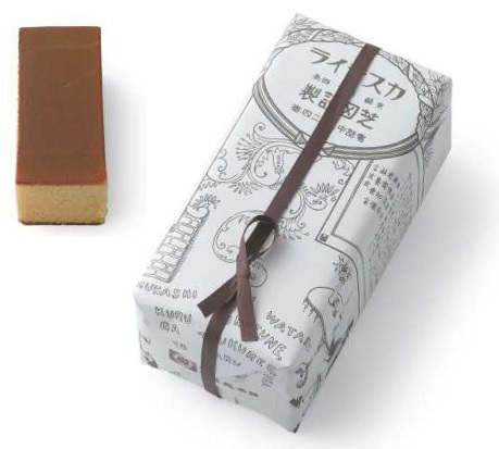 名物「春庭良(カステイラ)」の包装は、大正時代の包装紙を復刻したもの。