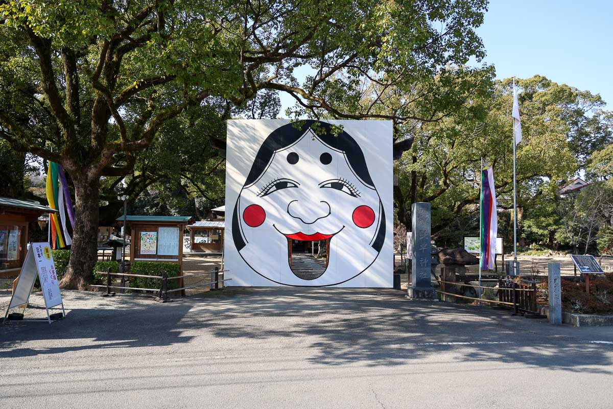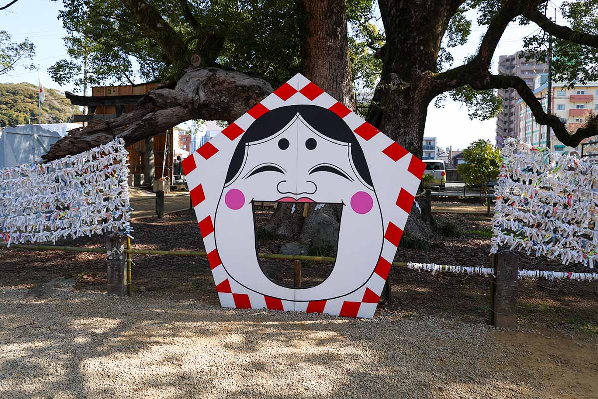 ※冒頭の画像は、諫早神社の「お多福面(※2月8日まで設置予定、天候によっては2月中旬までの可能性あり)」です