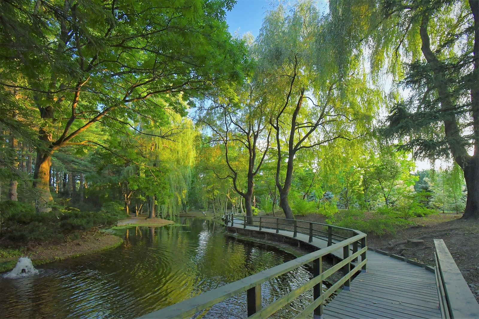 西洋式、日本式、風景式と3つの回遊式テーマ庭園があり、数万本におよぶ樹木が。