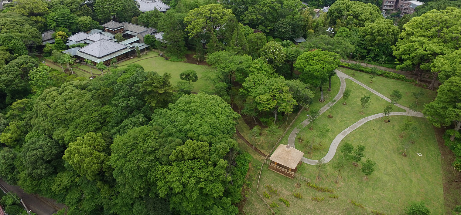 15,000㎡にもおよぶ本牧(ほんもく)の土地に池をつくり、京都や鎌倉などから移築した重要文化財10件を含む歴史的建造物や三重塔(さんじゅうのとう)を配した庭園。