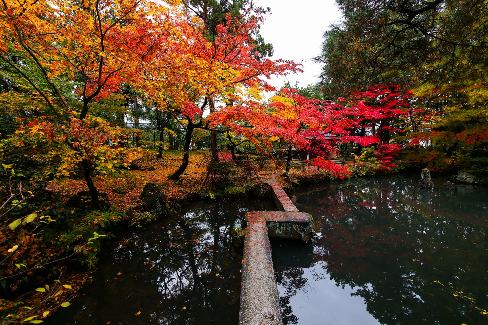 観音堂、岩山、池、橋などの配置が巧みで、池畔(ちはん)どこからの景観も秀逸。