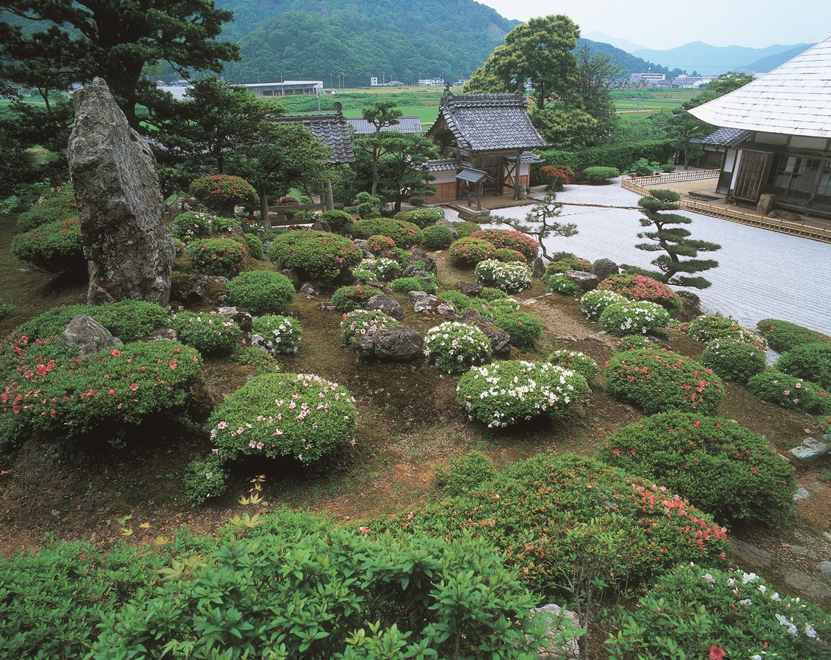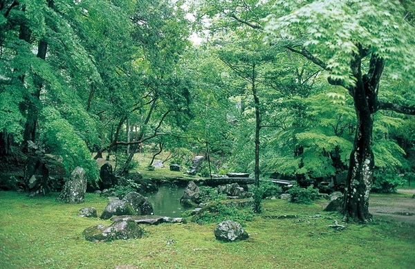 国の名勝に指定されている池泉回遊式(ちせんかいゆうしき)庭園は、元徳(げんとく)2(1330)年ごろ完成。