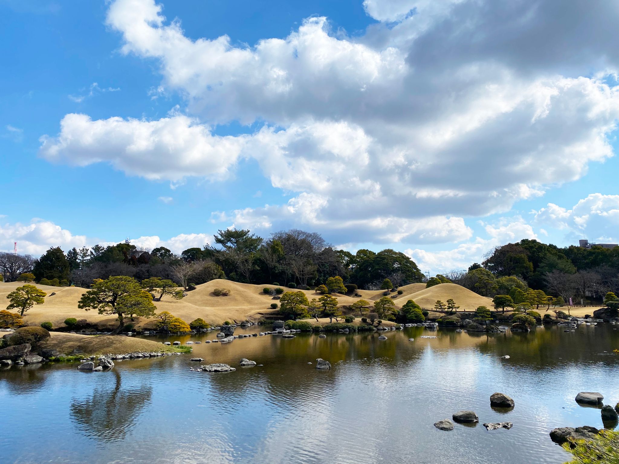 以後、細川光尚(みつなお)、細川綱利(つなとし)と三代にわたって藩主が作庭にあたり、1630年代から80年にかけて造営。