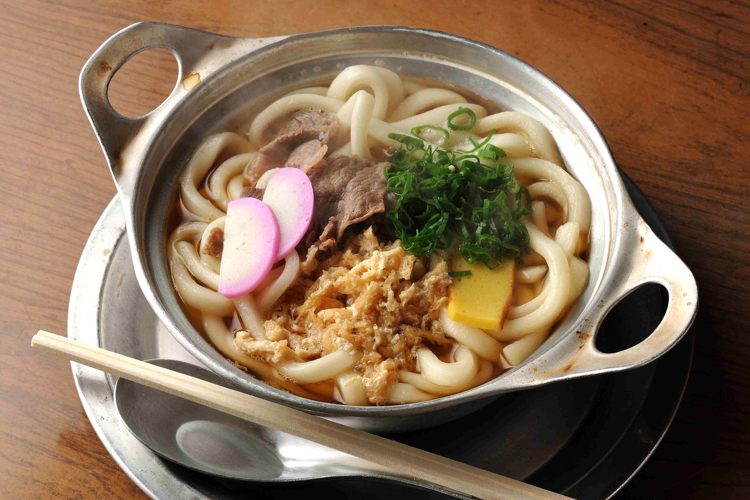 松山市民のソウルフードといえば、アルマイト製の小鍋からそのまま食べる熱々のうどん。