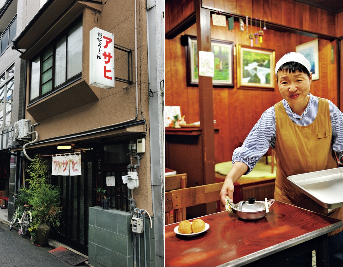 ごく細かく刻んだ油揚げや薄切りの牛肉をほんのり甘く炊き、甘みを繊細に重ねる「ことり」、焼き・揚げなど製造方法の異なる練り物で複雑に旨みを加えた「アサヒ」と、どこにでもある具材からおいしさを引き出す手法は、鍋焼きうどんひと筋で長く続いてきた店ならでは。