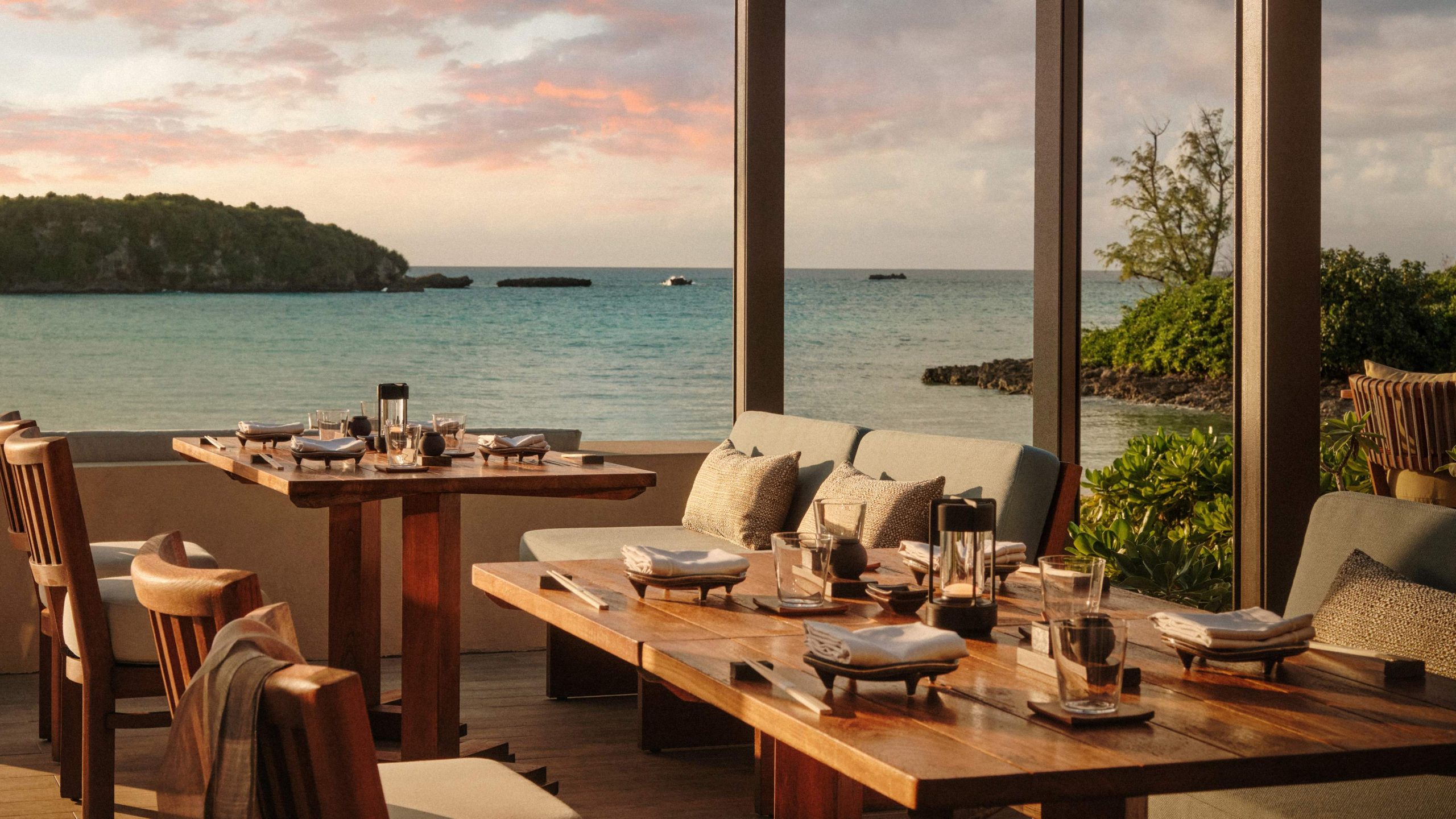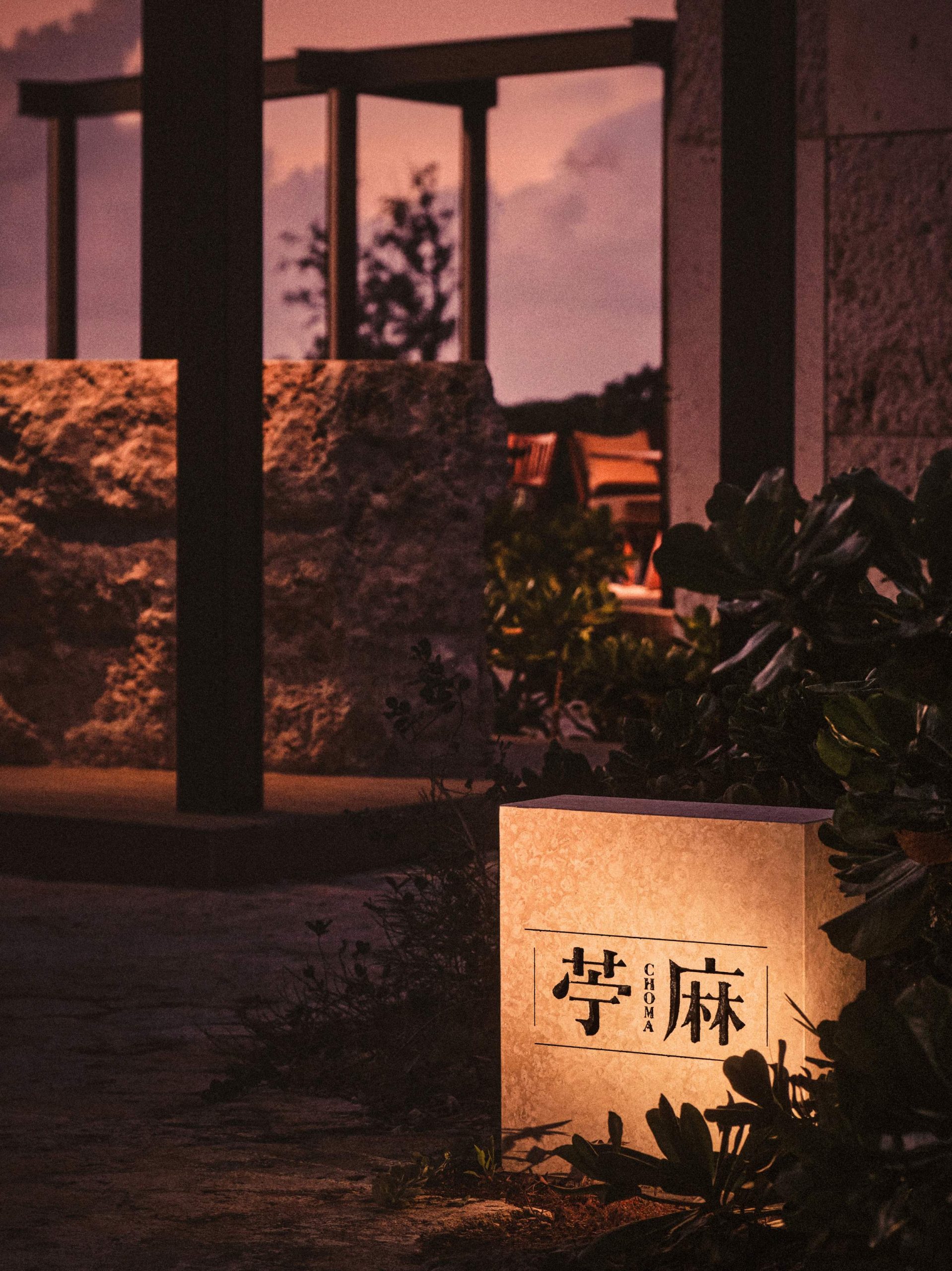 レストラン「苧麻」は、複数の建物から成るダイニング施設です。焼鳥・天婦羅・寿司のカウンターを備えた棟、鉄板料理棟、バー、そしてプライベートダイニングがそれぞれ独立して配置され、料理ごとに最適な空間を演出。ビーチフロントのテラス席では、やわらかい波音のなか、宮古島の恵みと日本各地の旬が織りなす料理を味わえます。潮風に包まれながら、土地の魅力を感じるひとときです。