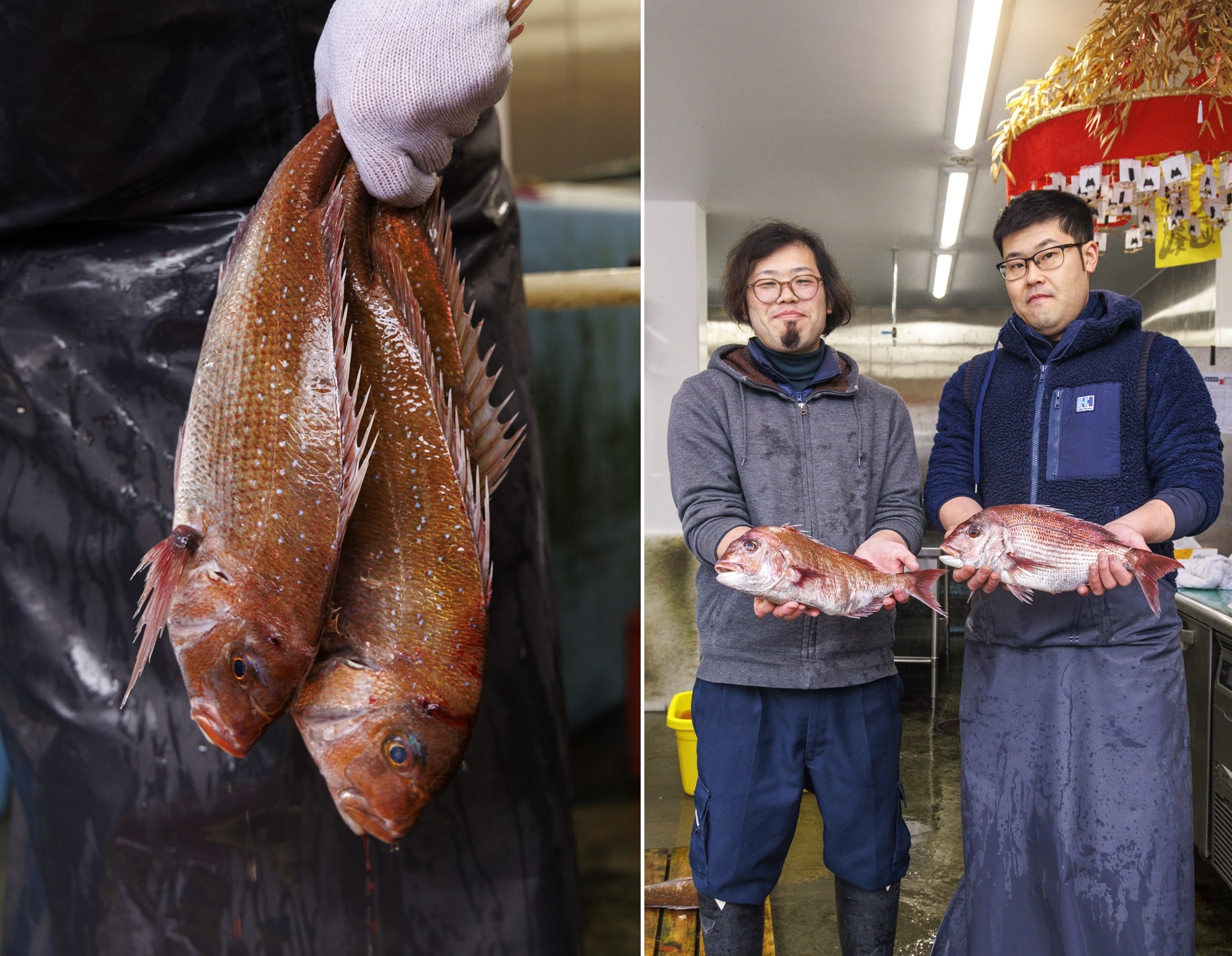 〝生け締め〟とは、生きている魚から神経と血を抜いて締めること。魚の旨み成分のイノシン酸は、生きている間には生成されず、締められた後に生成されるのですが、魚の体に残るエネルギー量が高いほど、その生成量が増えるとか。だからこそ、極力負担のかからない締め方の技術が必要です。水口商店3代目・水口貴士さん、翔平さん兄弟はその技術に長けていることが誇り。