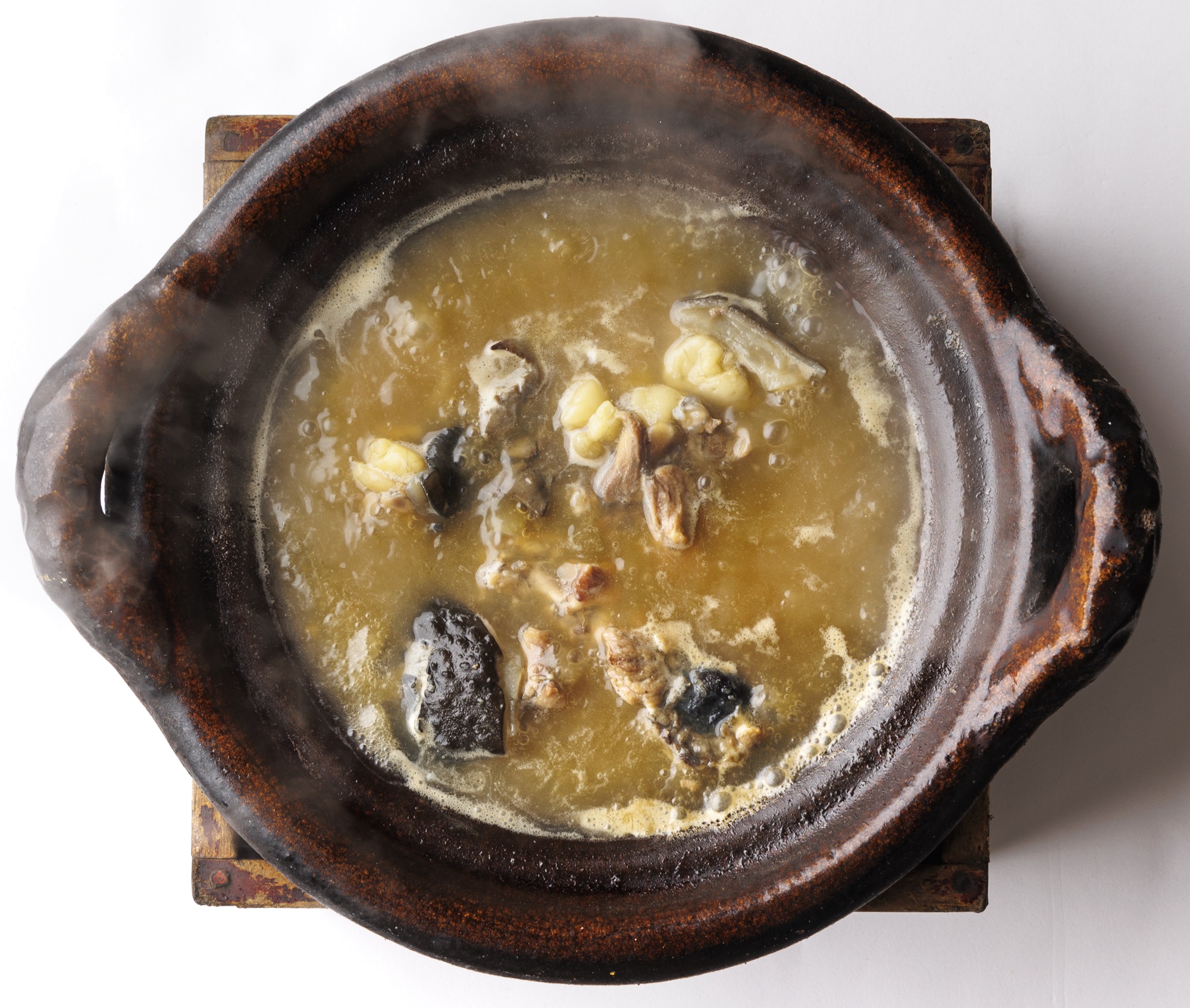 「ゆっくり旨みを引き出すと、スープの味は増すけれど、すっぽんの身がスカスカになるんです」と18代目主人・青山佳生(よしき)さん。驚くのは、雑炊も同様に超高温で仕立てること。すっぽんの旨みを吸った米は瞬時にアルデンテに。超高温の土鍋から生まれる至高のリゾット、これは珍しい!